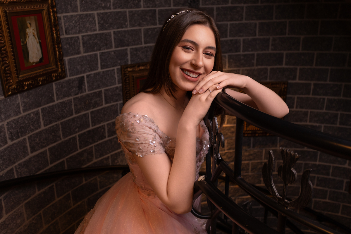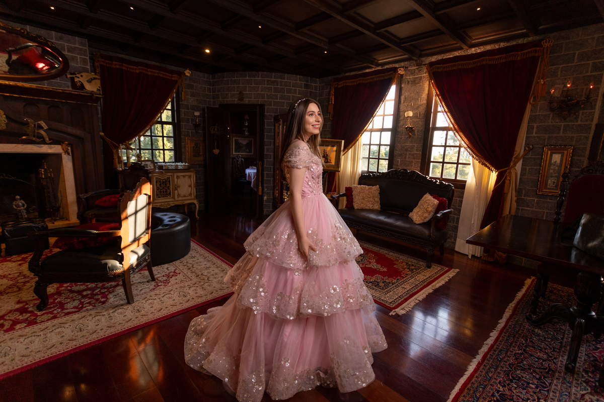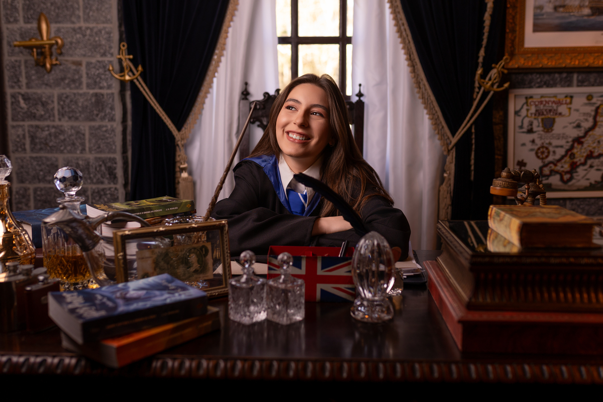 ensaio 15 anos Criciúma, fotos debutante SC, ensaio em castelo, fotografia 15 anos, ensaio princesa, Harry Potter, Hogwarts.