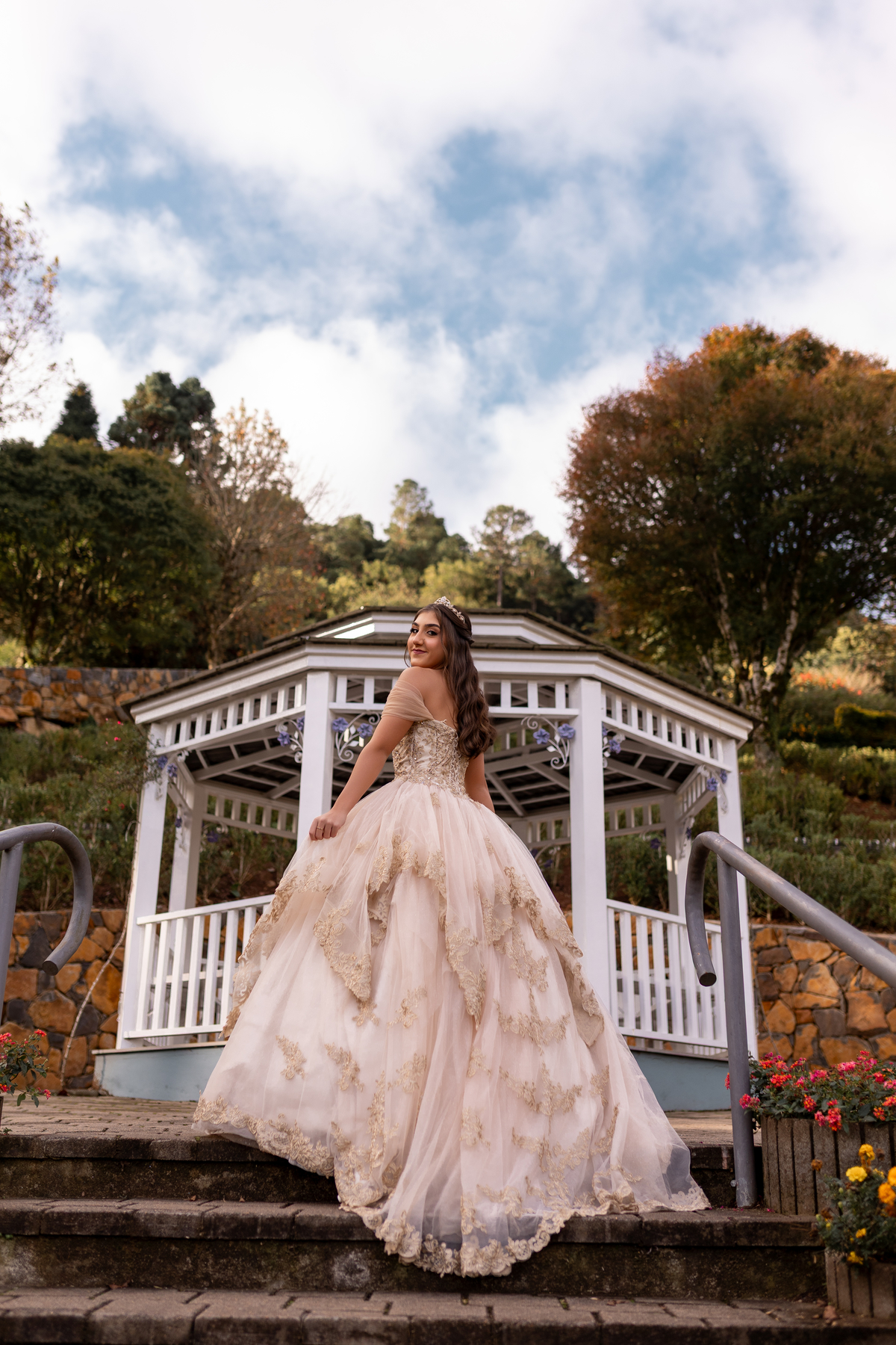 Ensaio de quinze anos estilo europeu no Le Jardin Parque de Lavandas em Gramado/RS. Um cenário encantador e um resultado incrível.